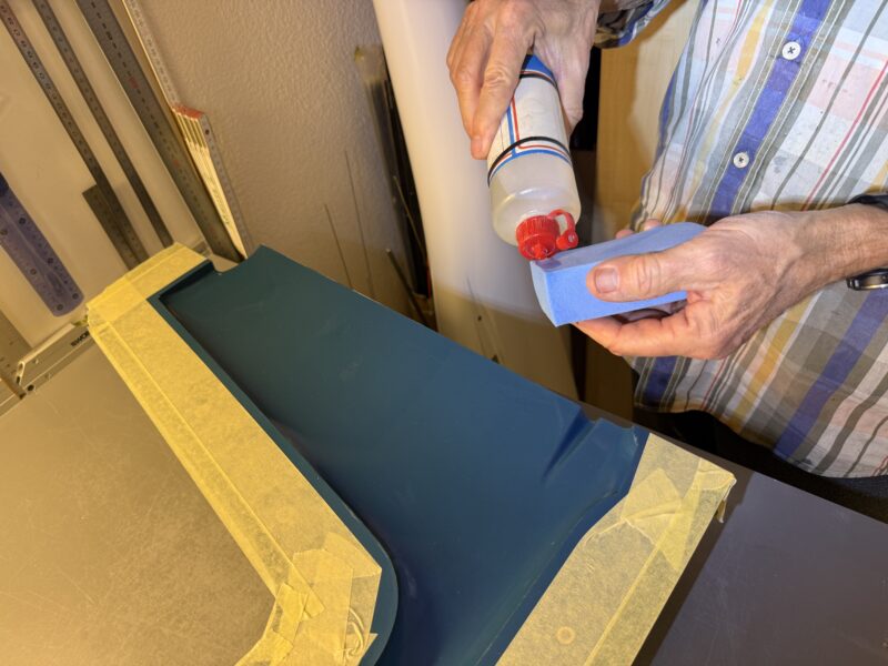 3) Apply a coat of PVA film release agent. We use the SCS PVA Folientrennmittel. Make sure you apply it with a water-soaked fine sponge. We use the blue SCS PVA sponge.