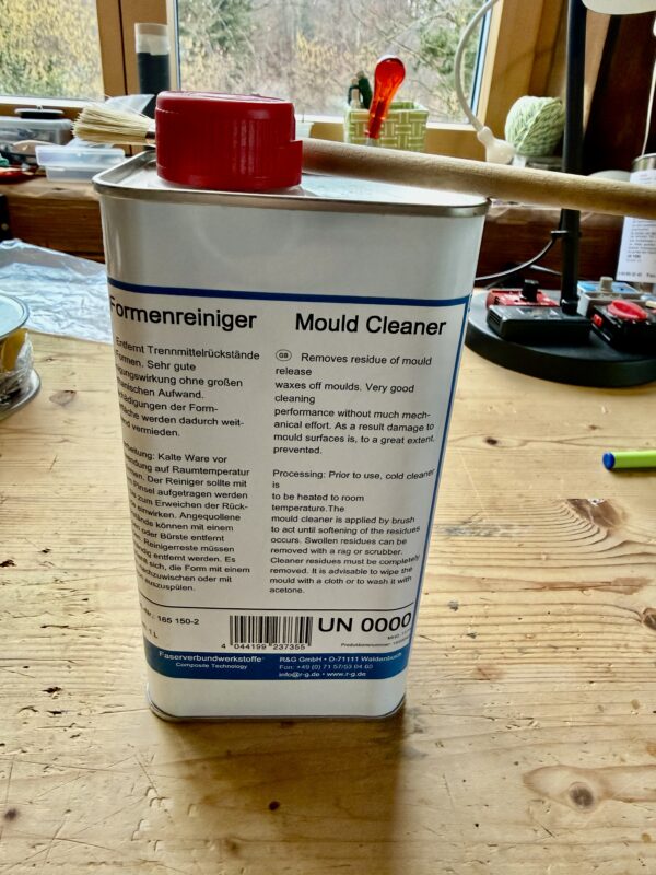 1) Clean the moulds using a mould cleaner. We use the R&G mould cleaner on the picture below, but that seems to be no longer available. Apply it with a paintbrush, give it some time to rest and then wipe the mould clean with a clean cloth. Then wash the mould with Acetone.
