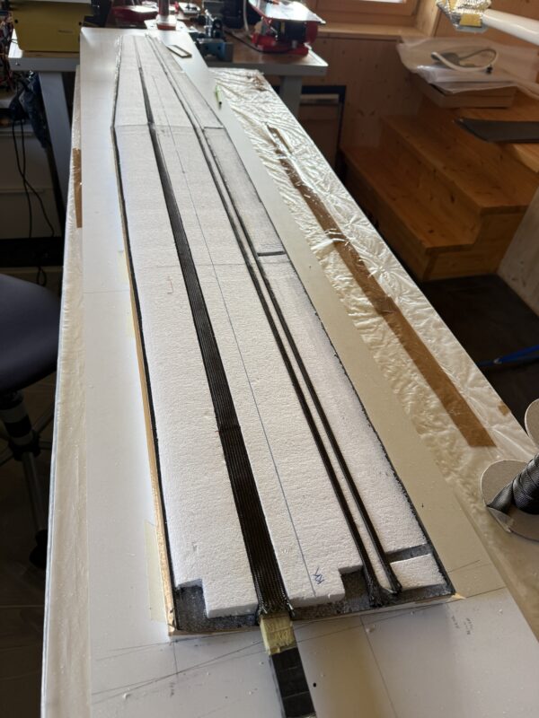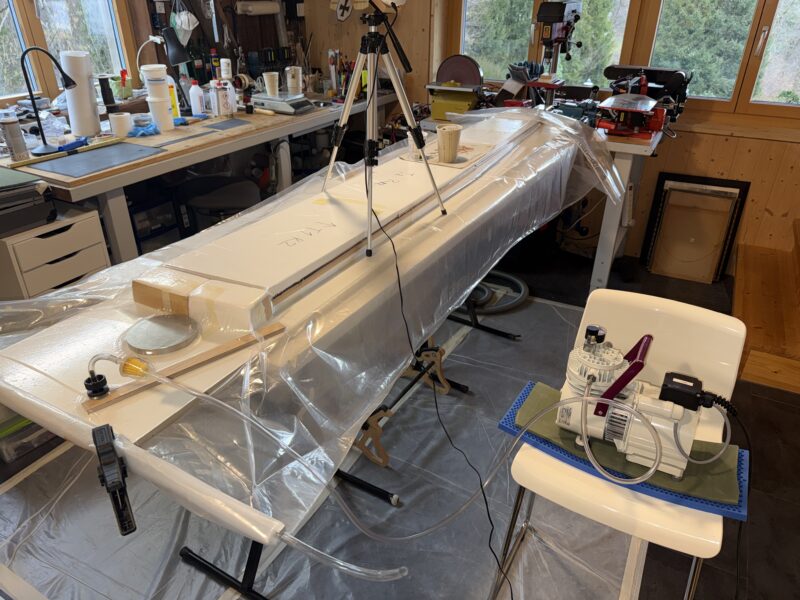 This afternoon I put the first wing of the Elfe S3 into vacuum. We always build the wings “upside down”, starting with the upper side first.