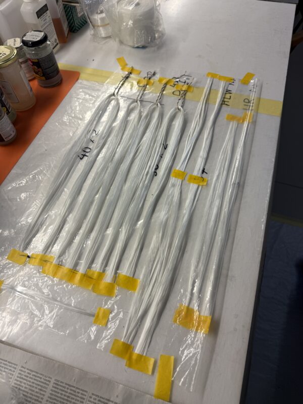 Note that you may need up to three rovings more on each side, depending on how much resin the rovings absorb (this can be adjusted by squeezing the tube coming out of the syringe – see picture)