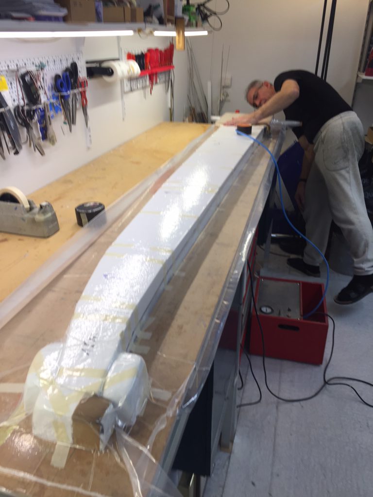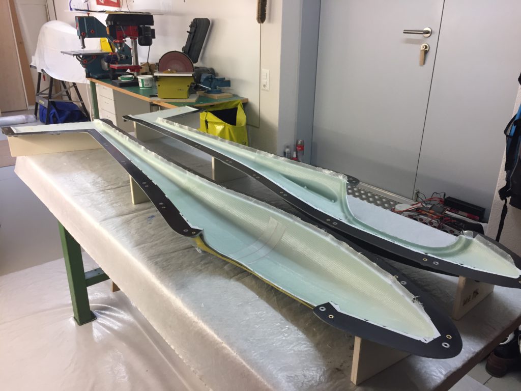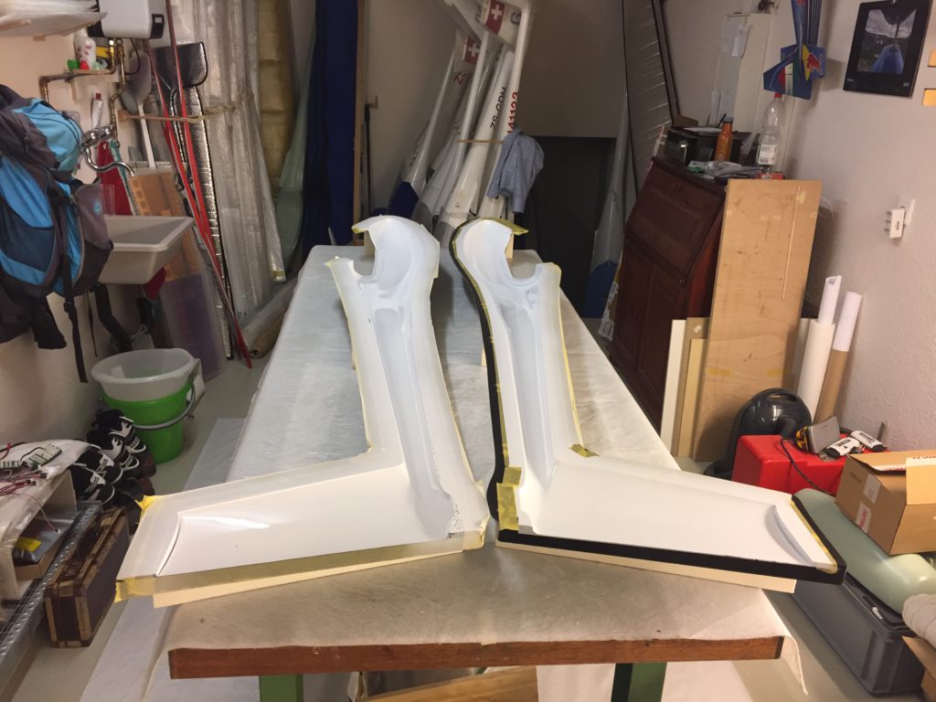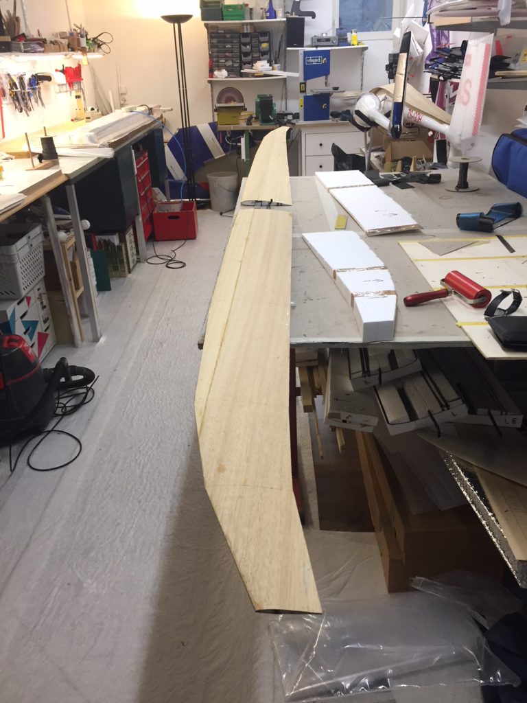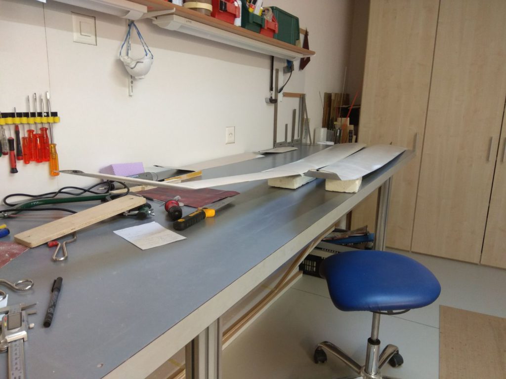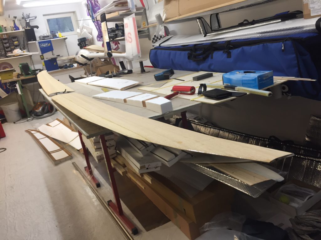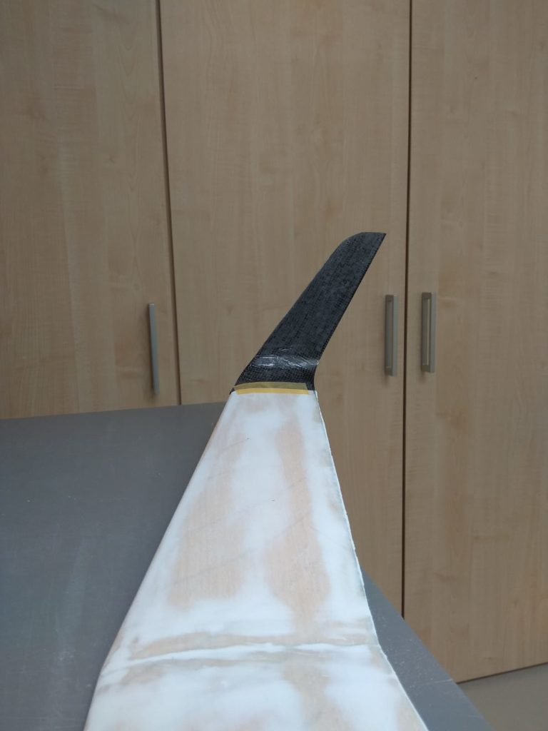 Georg is moving ahead quite fast on his JS3. He has finished designing and making simple moulds for the winglets. He tried to produce a single set of winglets that we could use for both wing sizes, but unfortunately that’s proven to be impossible. So we will need to produce two pairs per plane. Georg’s first trial set looks quite cool (note that the pictures are before they were fully sanded to shape, they look even better now!)