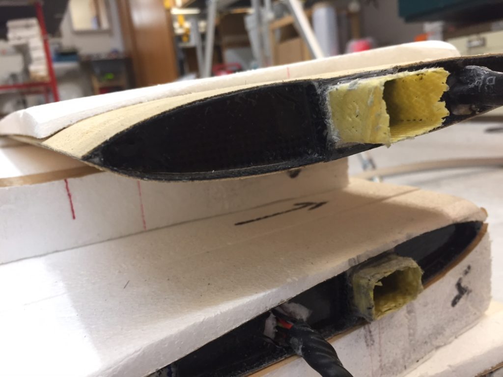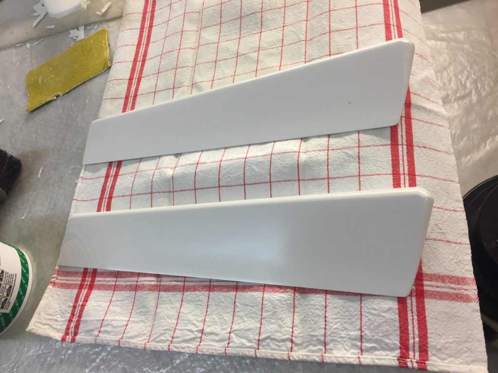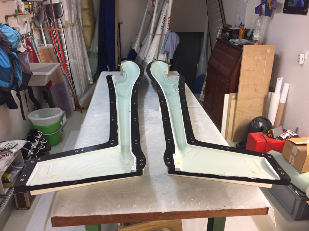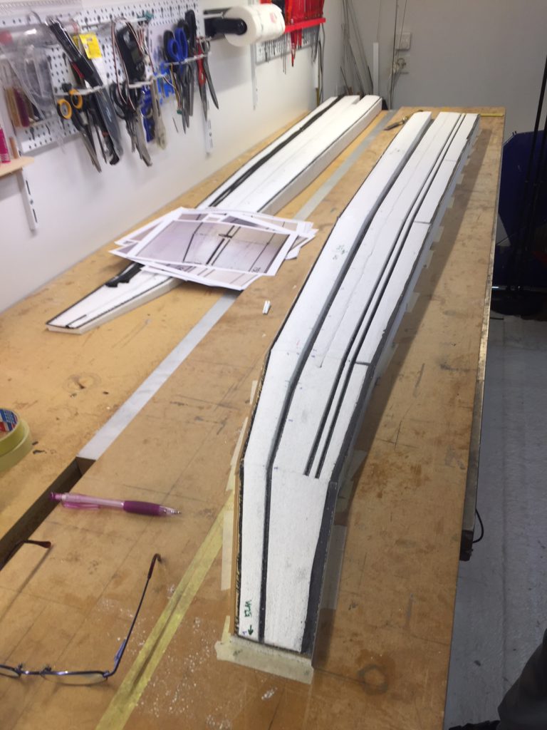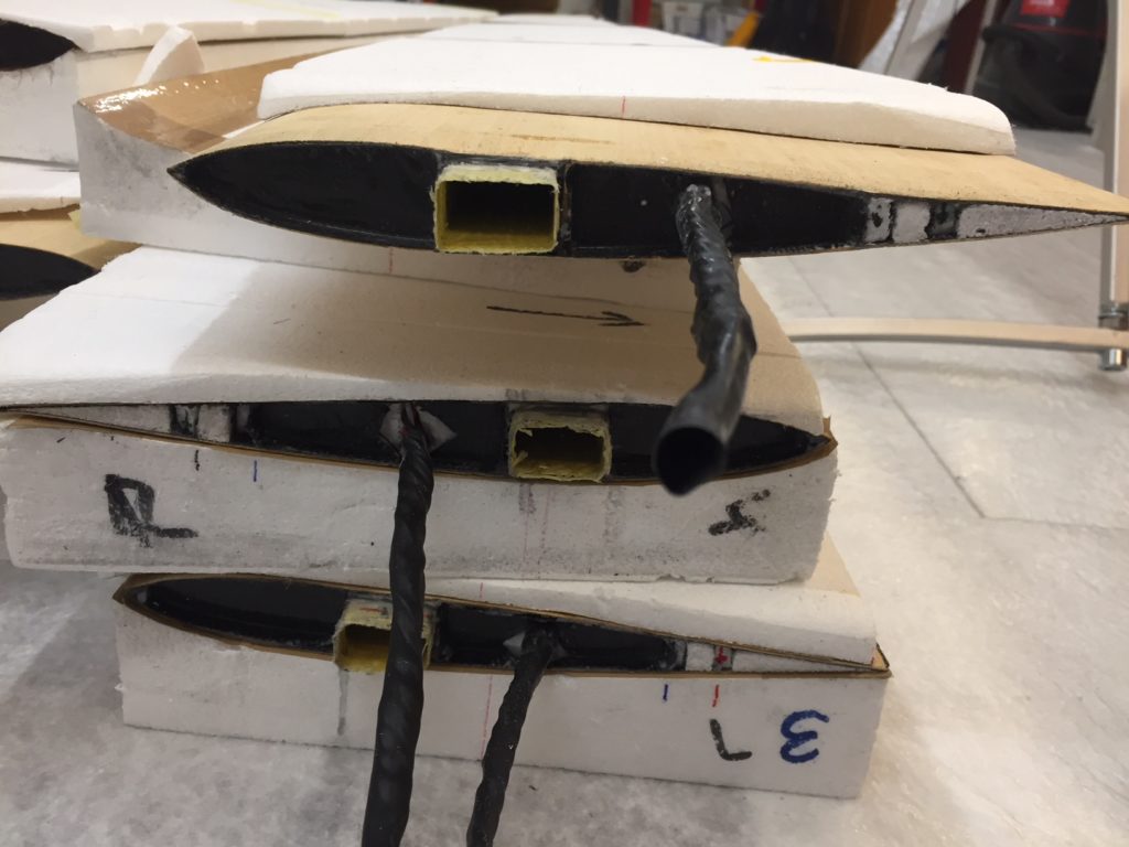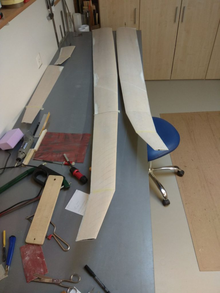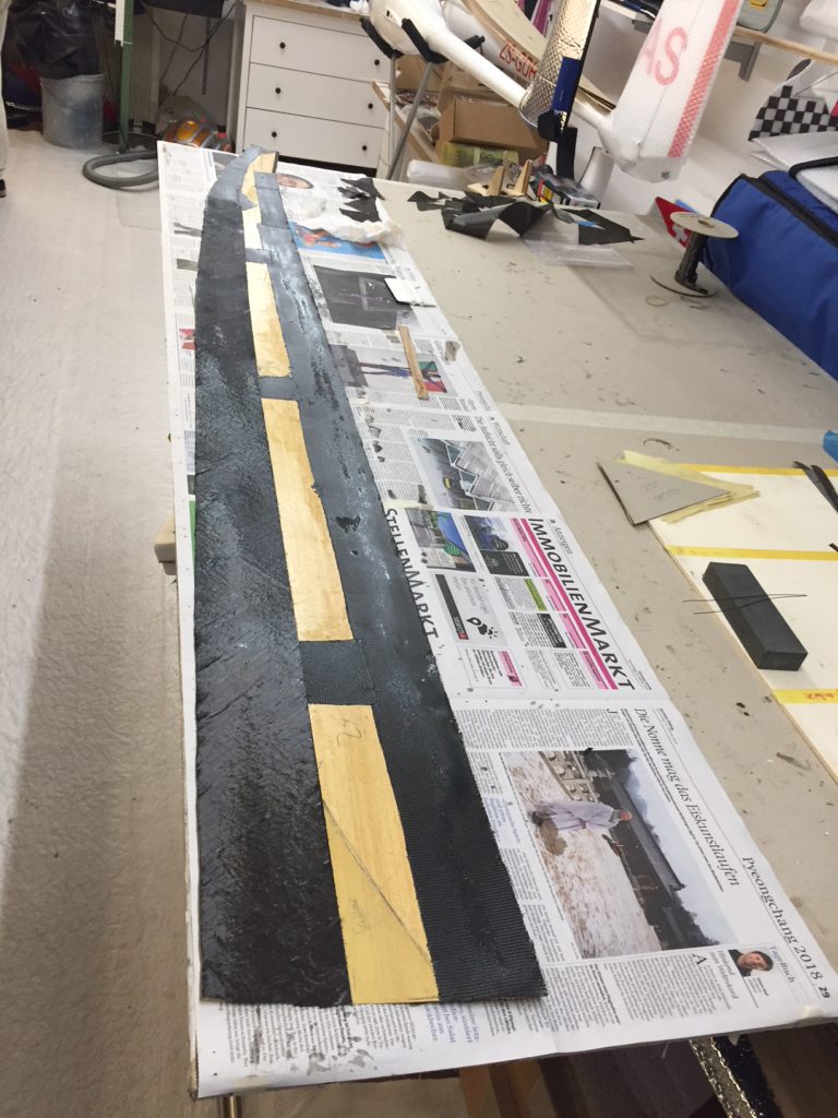 Georg is moving ahead quite fast on his JS3. He has finished designing and making simple moulds for the winglets. He tried to produce a single set of winglets that we could use for both wing sizes, but unfortunately that’s proven to be impossible. So we will need to produce two pairs per plane. Georg’s first trial set looks quite cool (note that the pictures are before they were fully sanded to shape, they look even better now!)