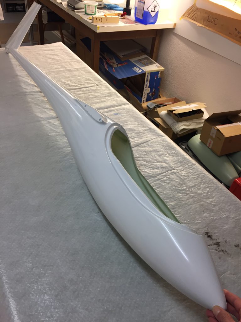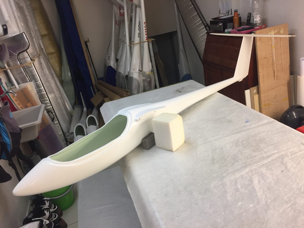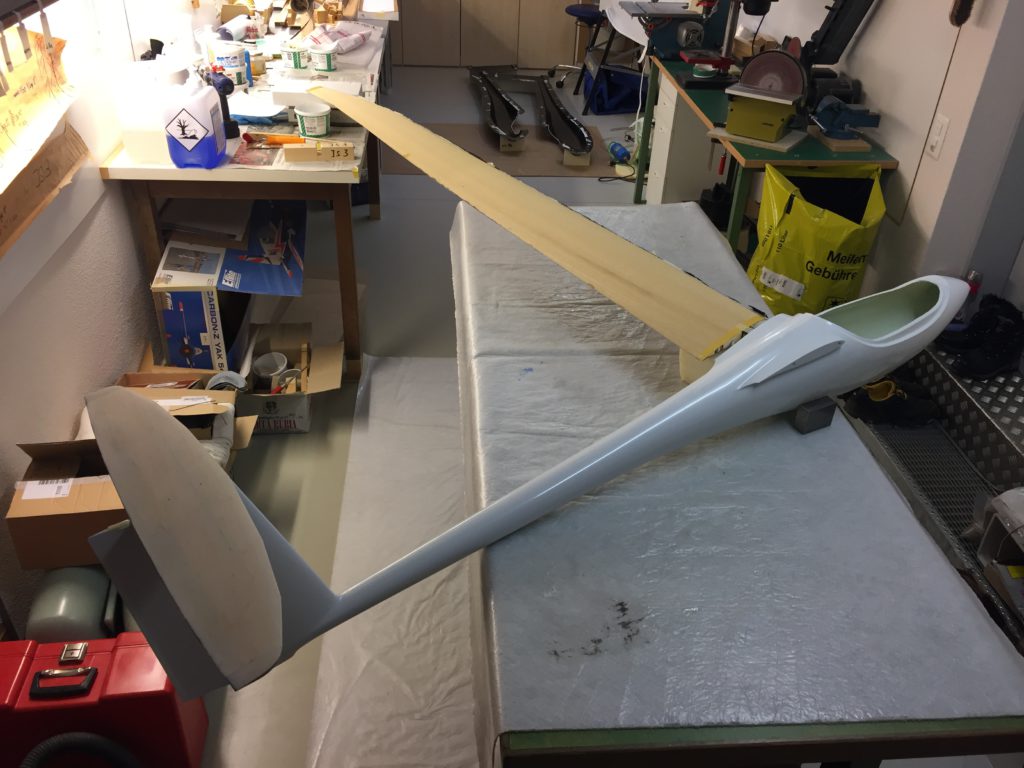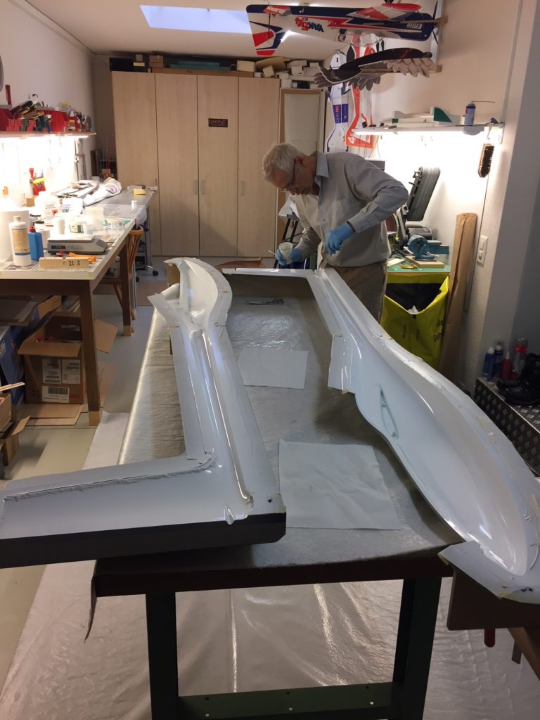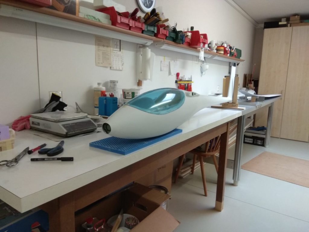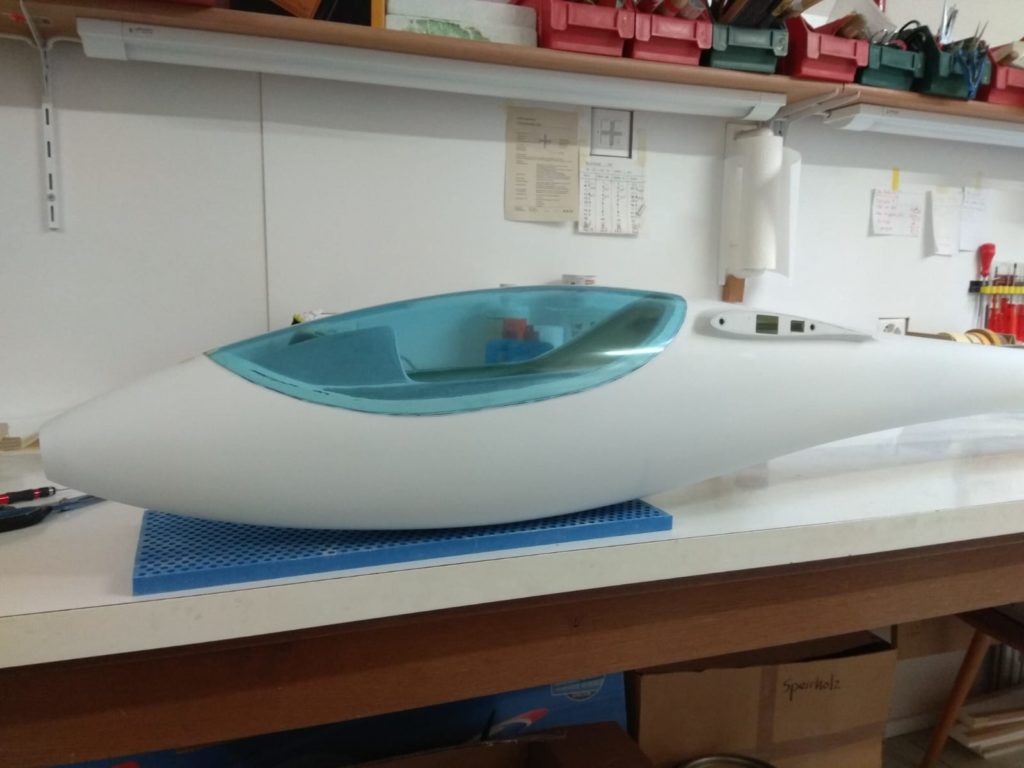 We also received the canopies, for which we produced the moulds a few months ago (see earlier posting). We’ve had a number of clear and light blue canopies produced (the original JS3 canopy is also light blue). Georg has already finished his canopy frame and the light blue canopy looks great (it’s a bit less blue in reality than on the picture). Georg’s JS3 is now ready to be fully spray painted in its final coating. I hope I can show some pictures of the fully assembled plane, freshly painted, shortly.