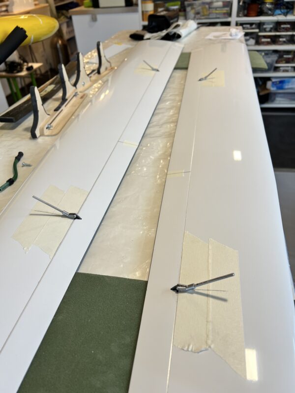 When I built my Taranis in 2019 the choice of linkage systems for the wing control surfaces was relatively limited and I decided to build my own, using a combination of brass and aluminium. After five years of flying the play on these linkages was too much for my liking. I’d been putting off changing the linkages, but yesterday I decided to upgrade the Taranis to the latest Chocofly Linear Drive System (LDS) – with aluminium servo horns, carbon rudder horns and steel/brass/aluminium connectors. It’s a system that I first built into my Ventus and am very satisfied with – there is zero play on the wing control surfaces and it’s much easier to install than the LDS systems I used earlier.