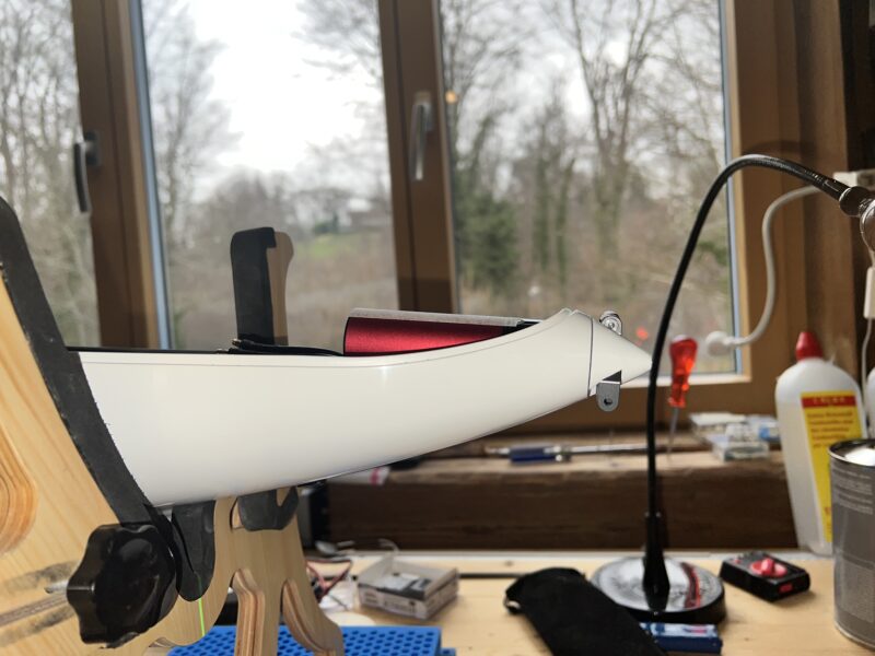 The hardest part of upgrading the Taranis was removing the old rudder control horns. Fortunately these were made out of aluminium, so I heated them with my soldering rod to melt the epoxy resin glueing them into the control surfaces and prised them out using pliers. After that installing the new carbon rudder control horns wasn’t too hard. The Taranis is now ready for further slope action. Hopefully I get to try out the updated Taranis on our local slope soon.