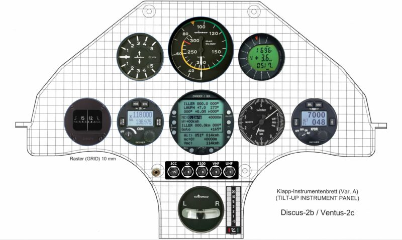 While searching the net for good pictures or examples of Ventus 2c instrument panels I was surprised by how little I found. Fortunately there was a nice drawing of an instrument panel among the papers from the first builds of the Ventus in our club 20 years ago. As this may be useful for others as well I’m posting it below. I’ve also found a good enough picture of an panel “in action” and used that to pick the instruments. I know the compass isn’t really in the right place….