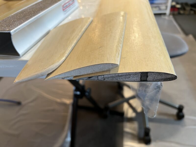 - The foam cores are glued onto 0.6mm obechi (abachi) wood. A good supplier in Switzerland for this is RIK Modellbau in Mosnang.