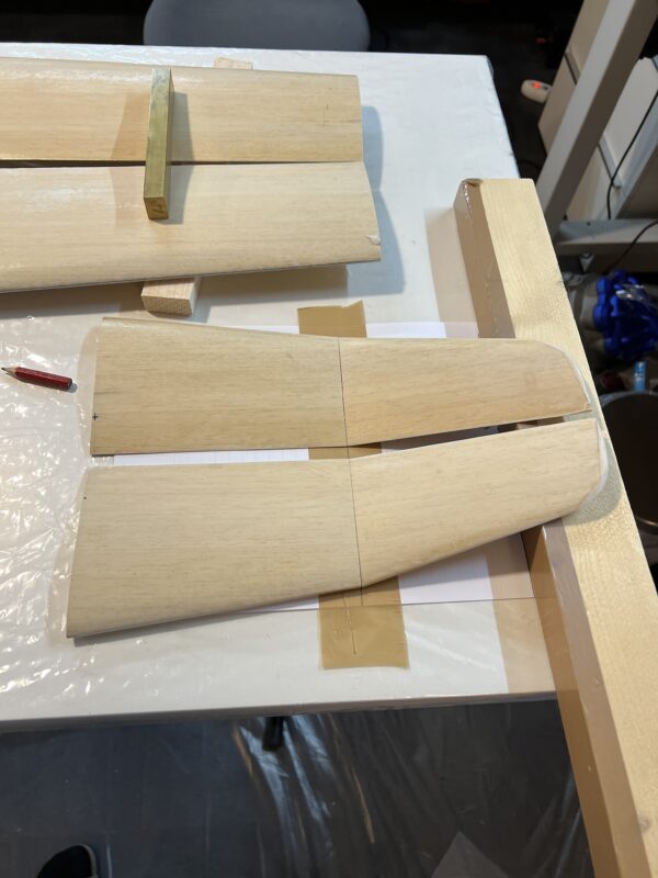 Each wing will be built in one piece. Once the wing is sanded and glassed, I will cut off the two outer segments and glue them back at the right angle.